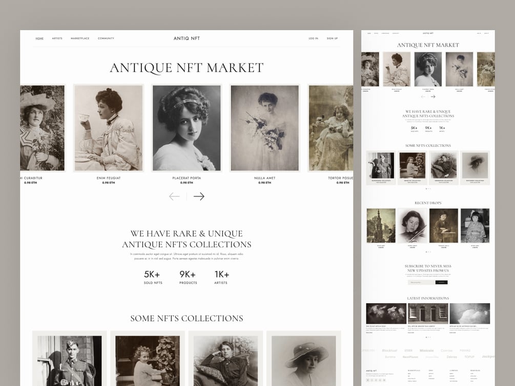 This template is also useful for other websites. Like, as bookstores, vase stores, and other stores also. This free Figma NFT Marketplace web design template is a vintage or antique type of design.