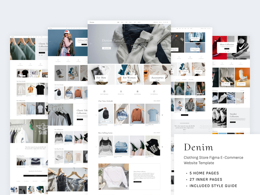 Denim clothing store free Figma eCommerce template is a modern, minimal website template.