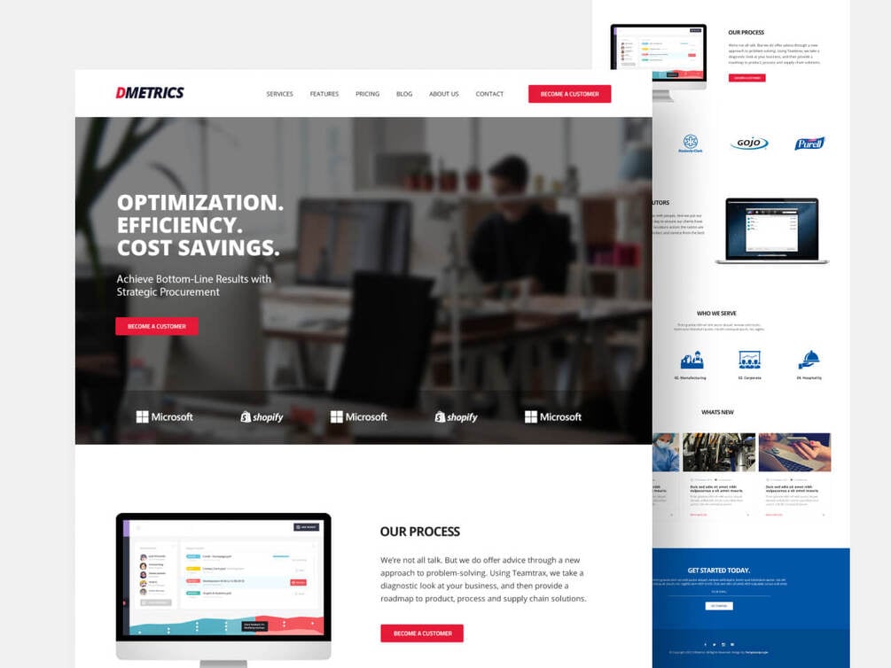 DMetrics is a free landing page PSD template for web applications and software. It is suitable for any other online apps as well.