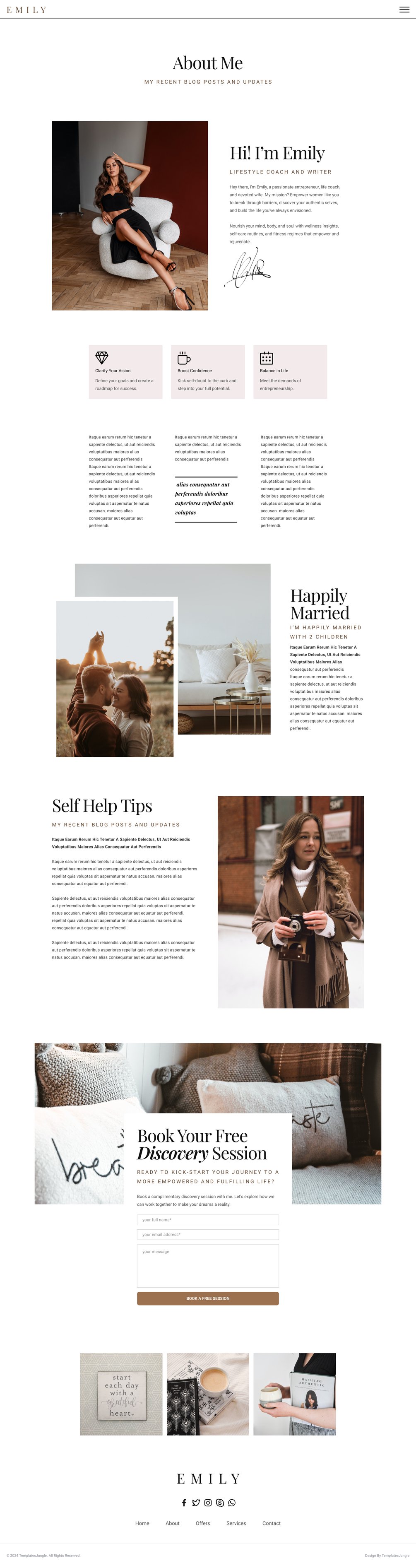 Emily - Free Life Coach and Writer Figma Website Template