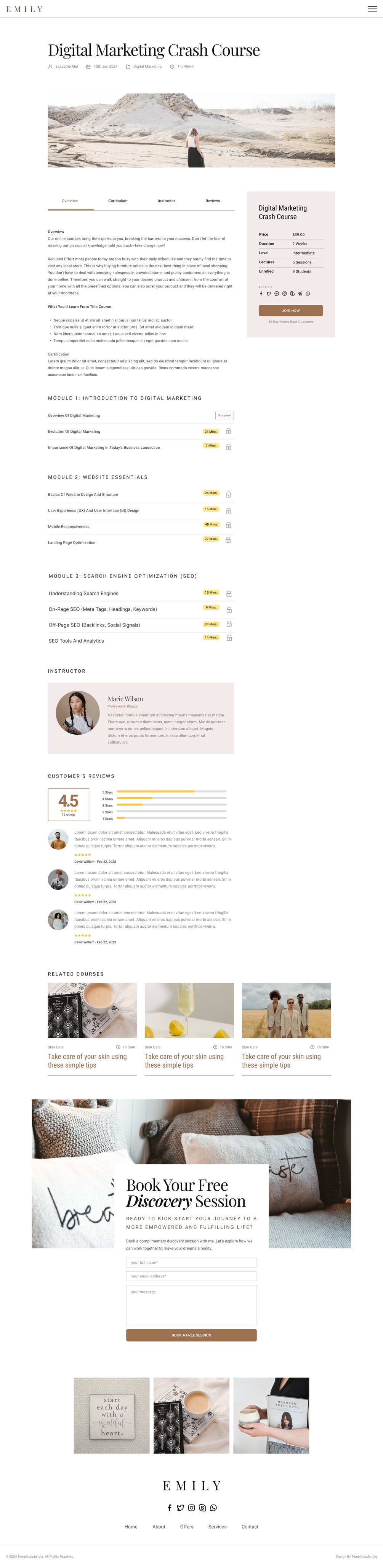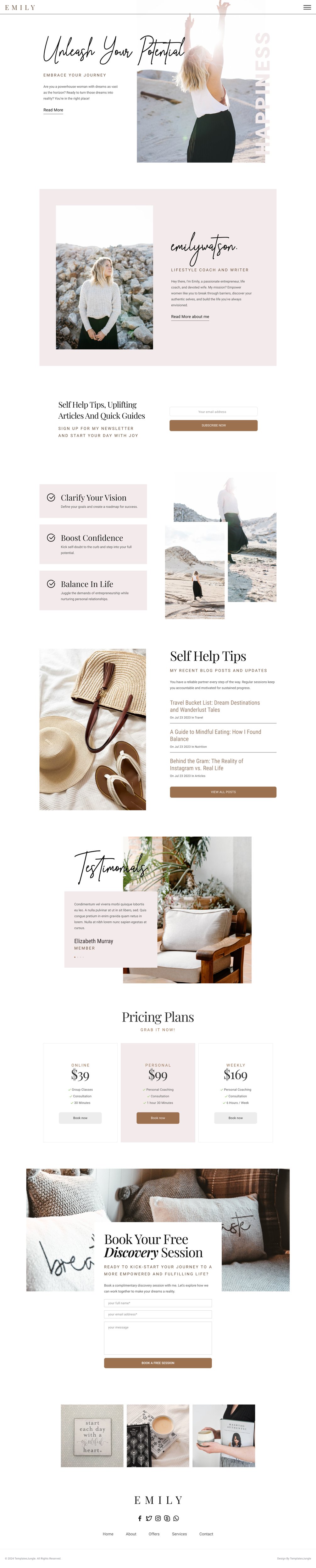 This template offers a user-friendly interface, allowing coaches and writers to showcase their expertise with elegance. "Emily" provides a visually appealing platform that not only reflects professionalism but also resonates with the target audience. The thoughtful color palette, stylish typography, and intuitive layout contribute to a seamless user experience.