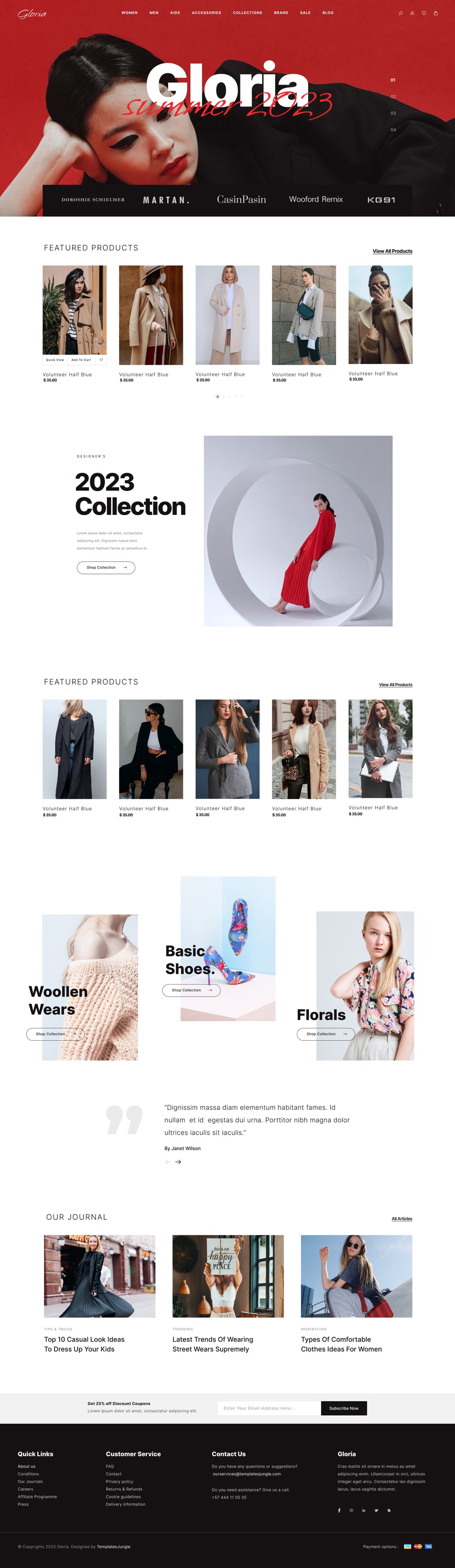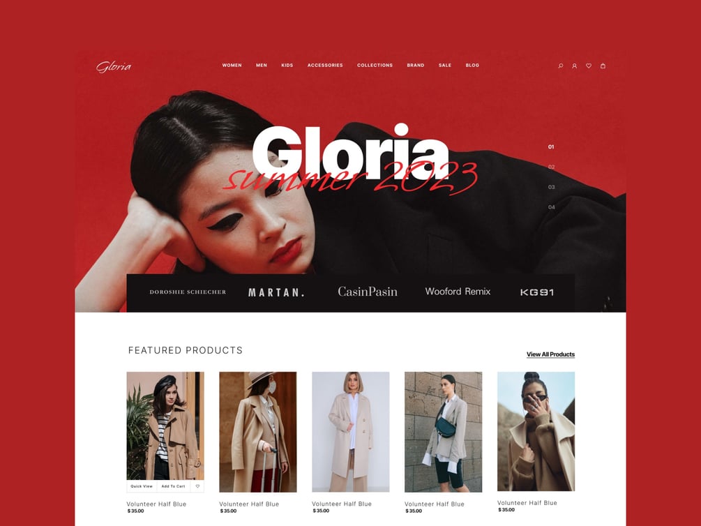 Gloria is a free eCommerce Fashion Store Figma website design template by TemplatesJungle. It best suits any fashion store, fashion blog and magazine, etc.