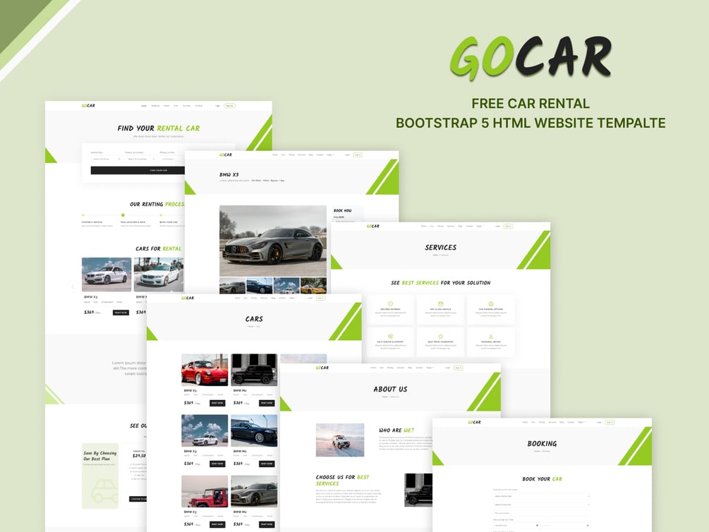 GoCar is a free and 100% customizable Bootstrap 5 website template. Use 20+ design elements to create the pages you need on your website. It can also be used as a one-page template as it has a sticky navigation to navigate through the page.