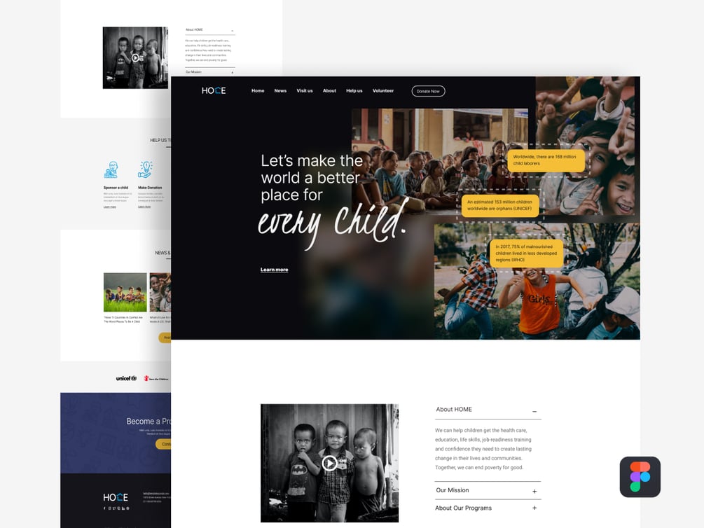Home is a free nonprofit organization Figma website design template by TemplatesJungle. You can use this template for any fundraiser page, social organization website, non-profit organization website etc. It has a beautiful layout and design elements to elegantly display your information and generate leads for your organization.