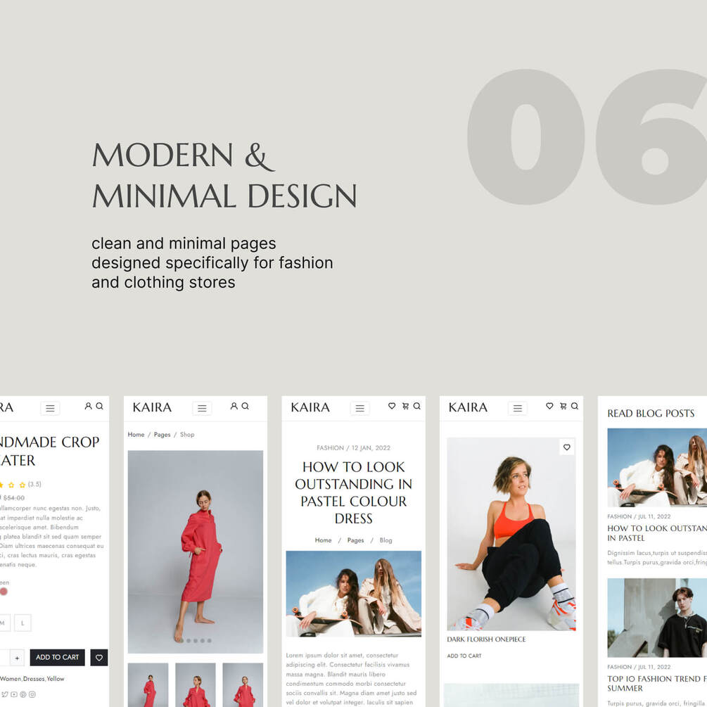 Kaira's aesthetic appeal enhances your fashion store's visual appeal, providing a modern and stylish look that captivates visitors.