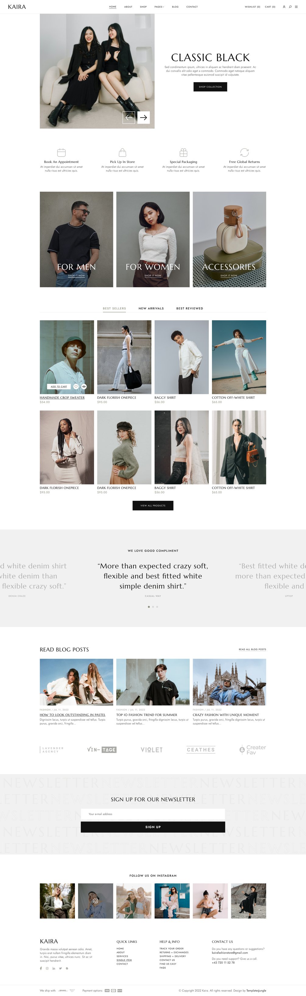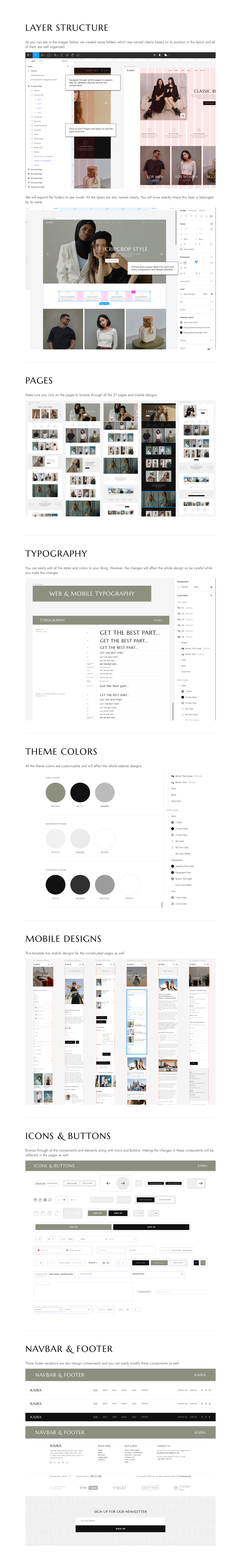 Kaira fashion store Figma template also includes well-organized layers and groups, making it simple to navigate and customize. And, with the template being compatible with desktop and mobile devices, you can ensure that your website will look great on any device.