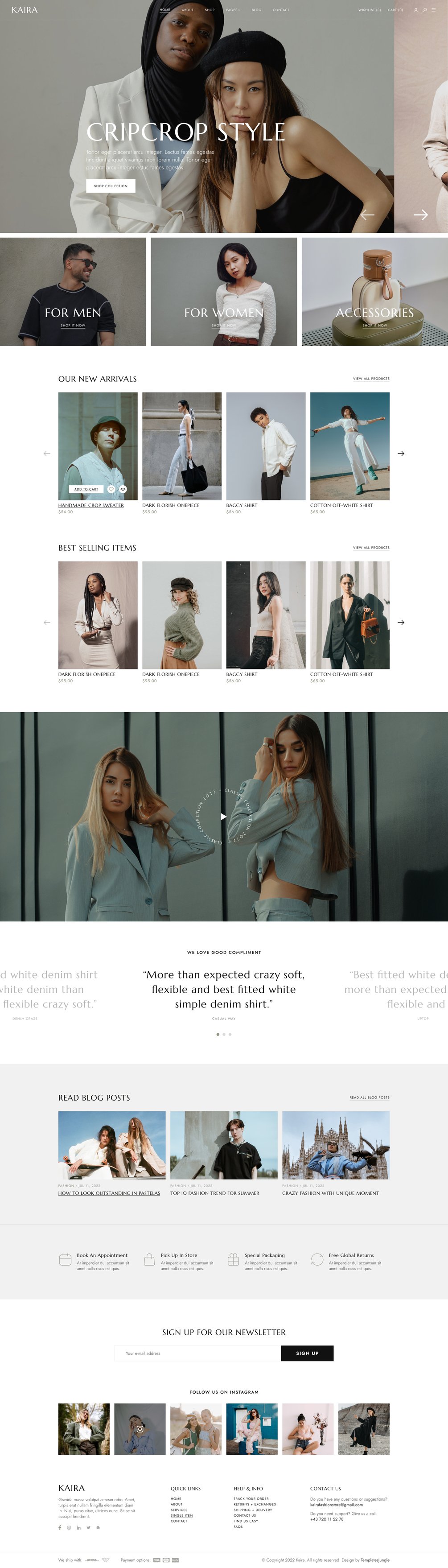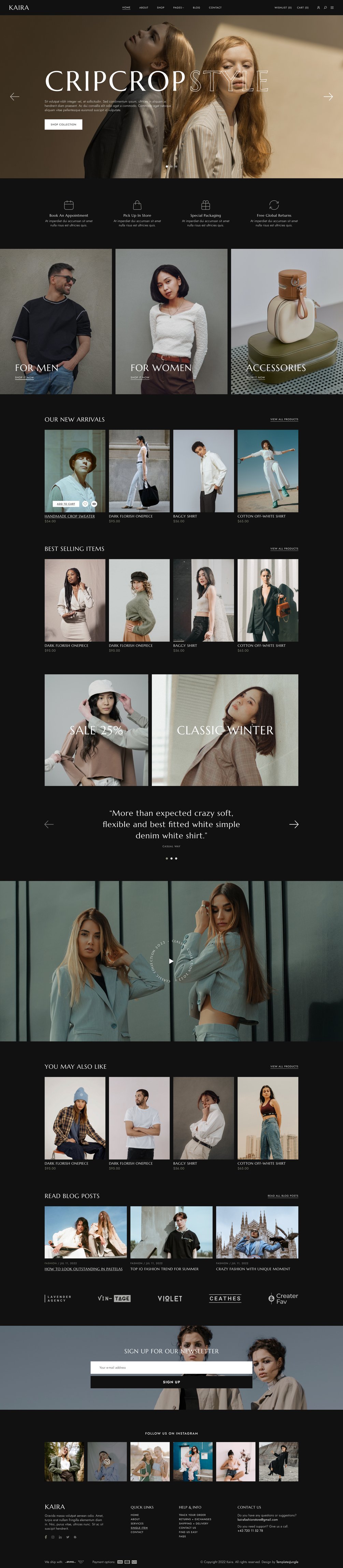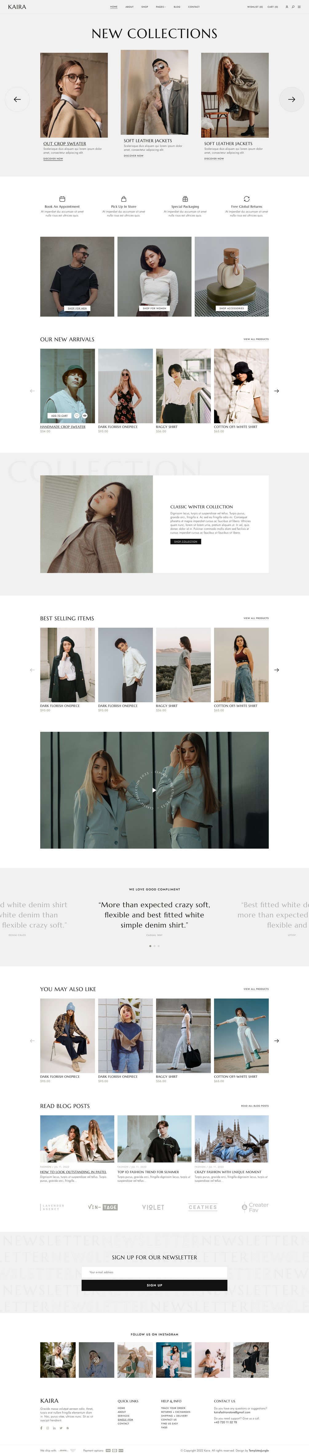 Kaira fashion store free Figma template is a clean and minimal eCommerce website template.