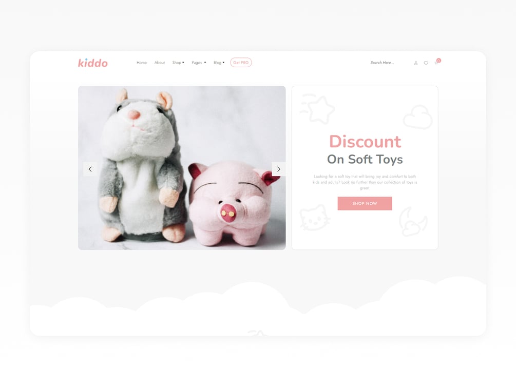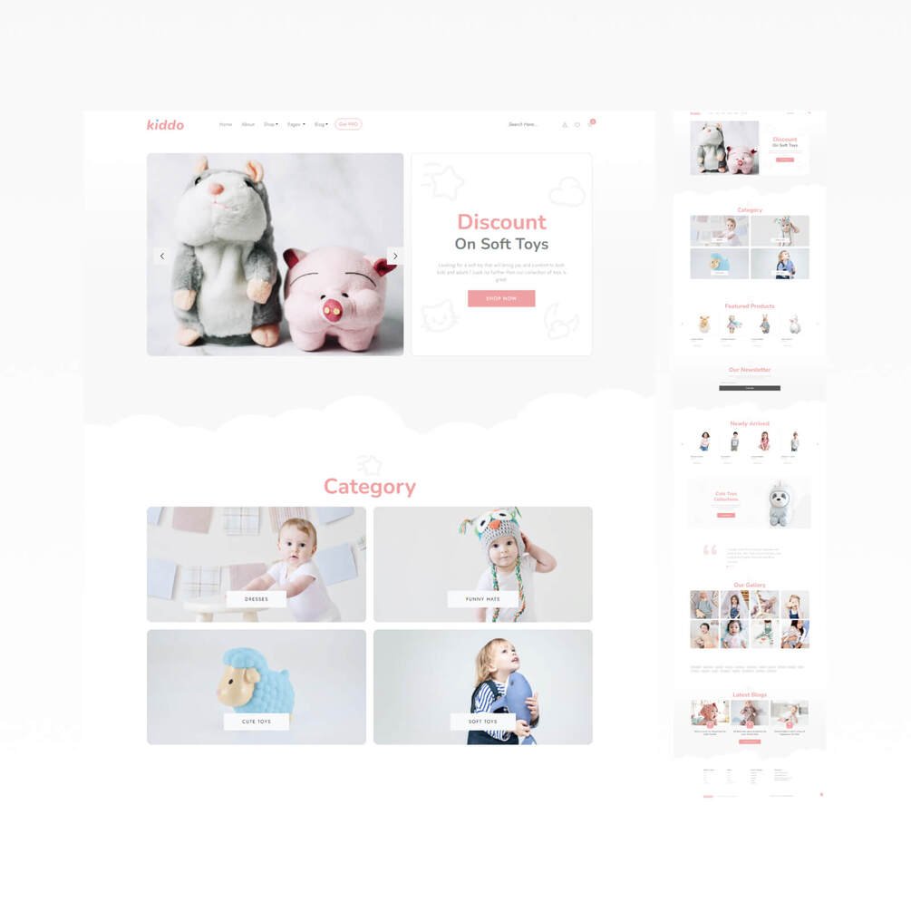 Kiddo is a kid's store Bootstrap 5 e-commerce template. This e-commerce template is suitable for any kid store, toy store, accessories, etc. Its vibrant design look makes it a beautiful choice for children's online stores.