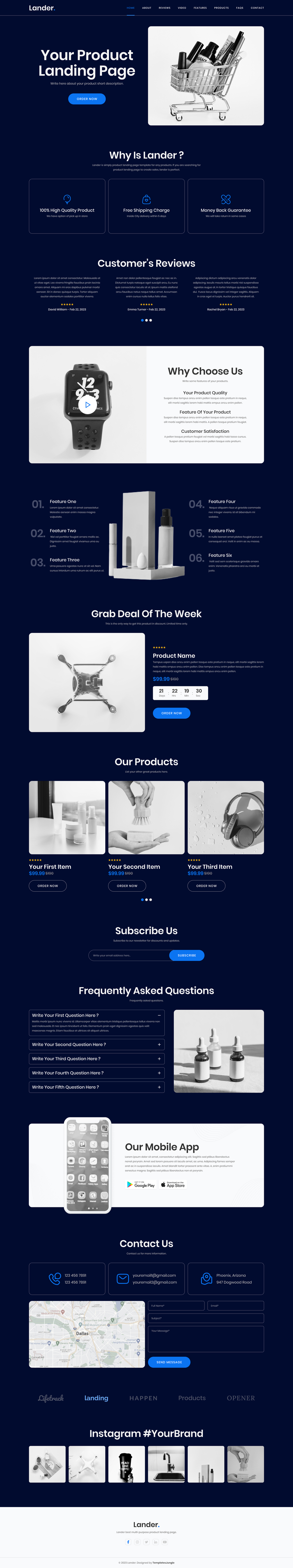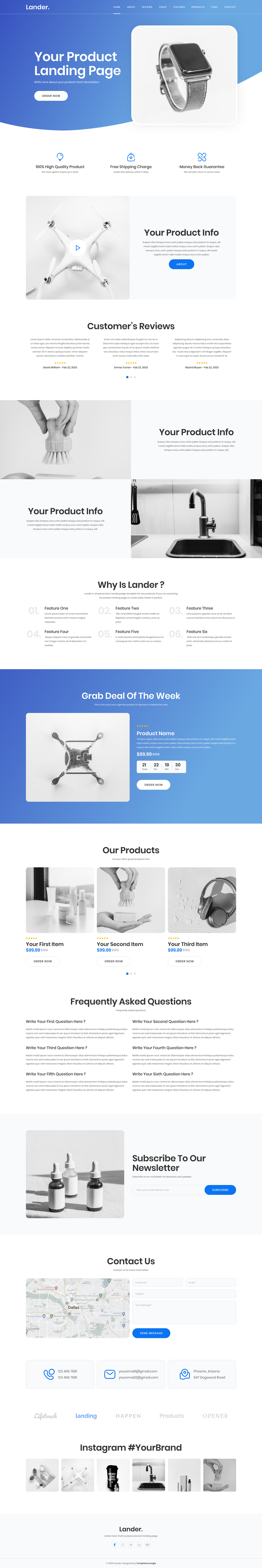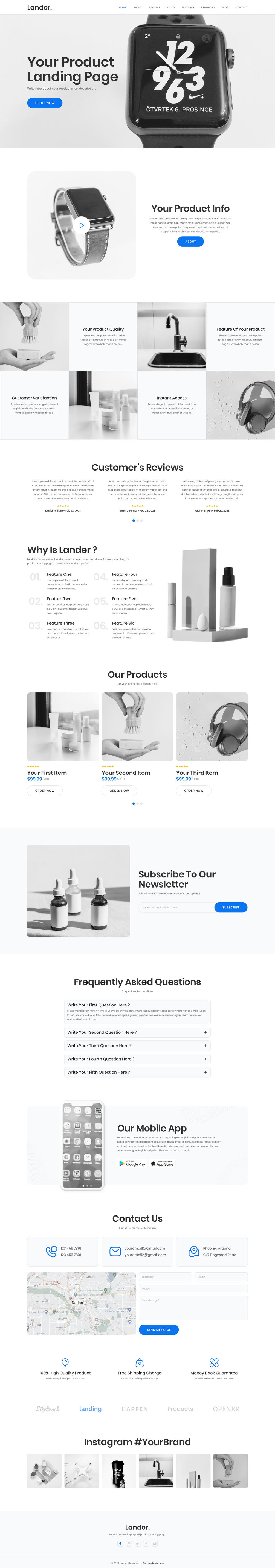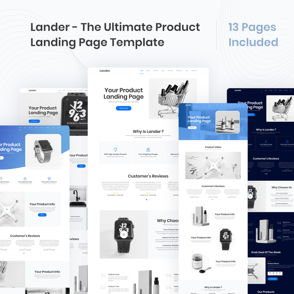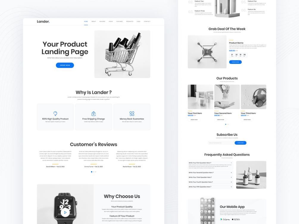 You will find out two versions of the Lander - product landing page template. With our free version, you can get one page.