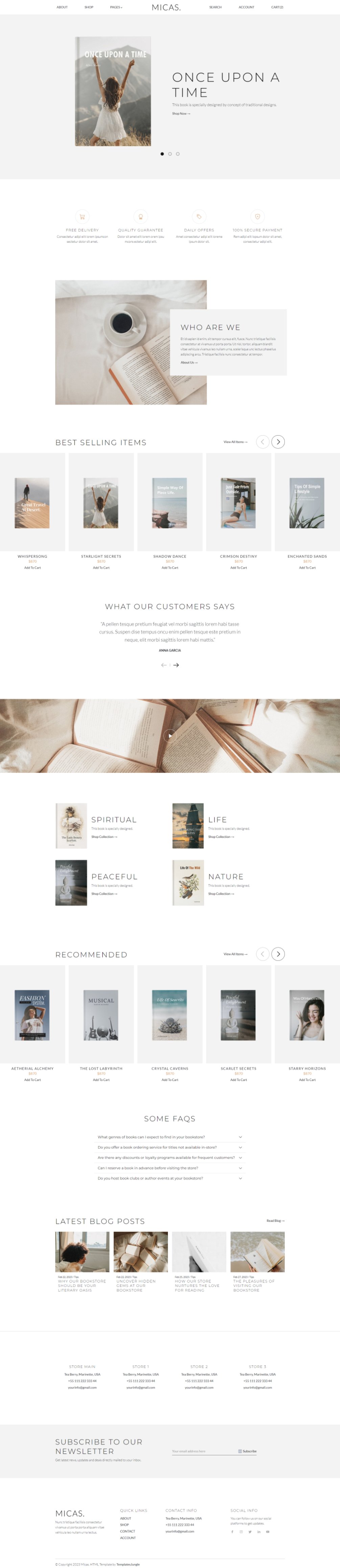 Download this free online bookstore Bootstrap 5 website template. This free website template is for any bookstore or bookshop. Its minimal and clean look makes it a beautiful website template that is suitable for online book stores.
