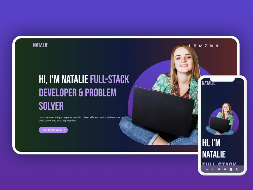 Natalie is a free Bootstrap 5 developer portfolio website template by TemplatesJungle. This HTML CSS template is specially designed for a personal portfolio website.