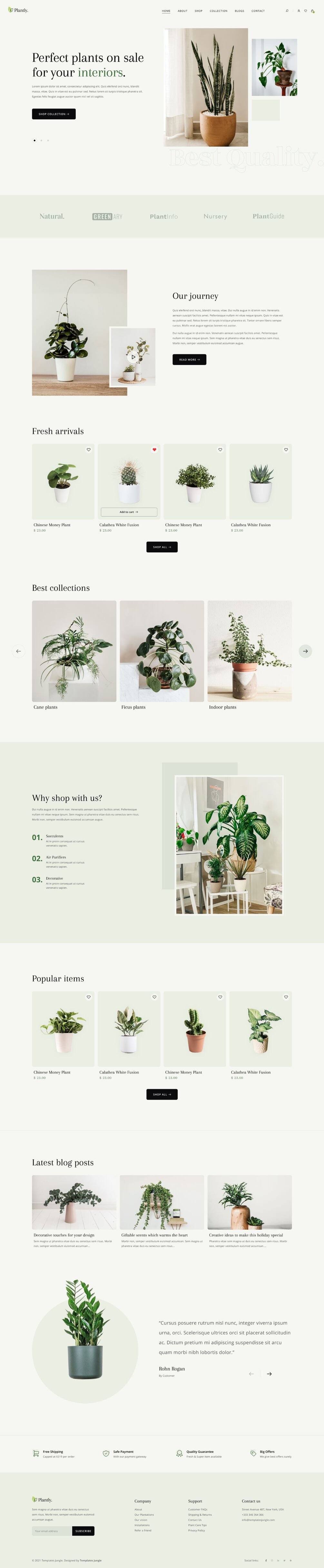 Plantly is a free plant selling website template by TemplatesJungle. It is suitable for any eCommerce store, online shopping website, plant store, nursery, florist, mini store, etc.