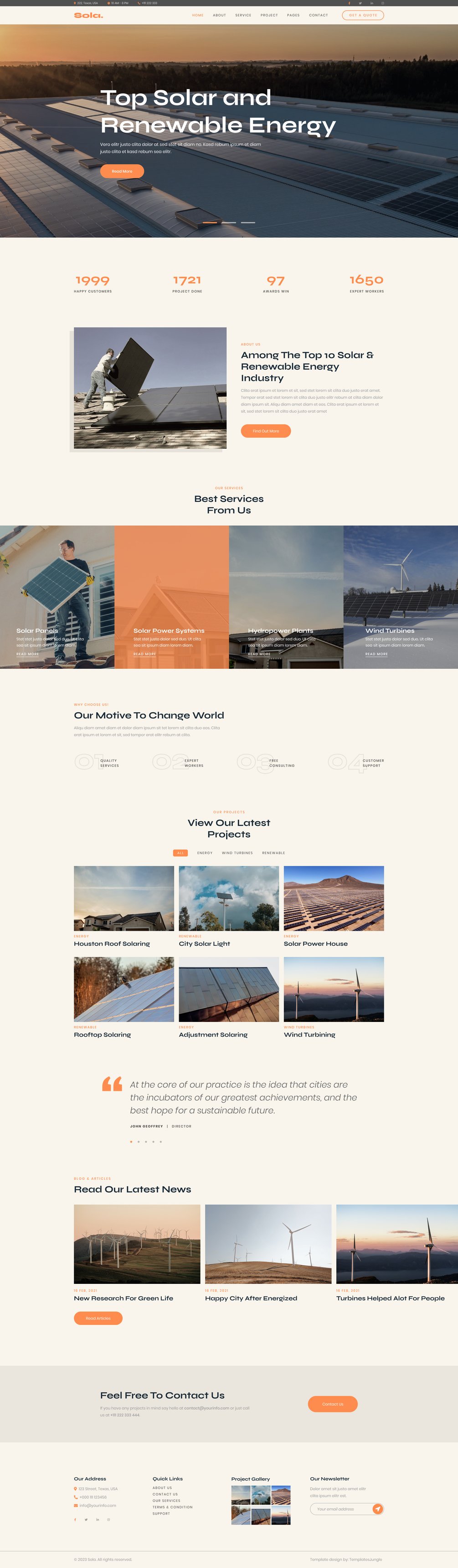 Sola is a free solar energy Figma website template by TemplatesJungle. It is suitable for solar energy, renewable energy, solar power, etc related website templates.