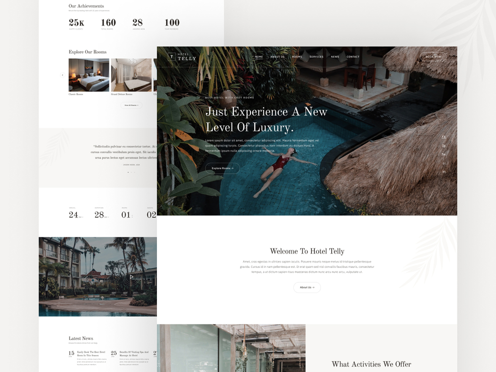 Telly – Hotel Figma Template is designed for Hotel Booking, Resort Hotel, Luxury Hotel, Apartments, Hotel Agency, or any kind of Accommodation providers by TemplatesJungle. It has a clean and modern design to match the new design trends.